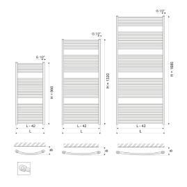 Die Leiterheizung ist in zwei Ausführungen erhältlich: mit geraden Sprossen KD-E oder mit gebogenen Sprossen KDO-E.