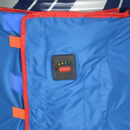 - Senkrechter Klettverschluss 15 cm mit eingesteckter Steuereinheit aus Polyester, orangefarbig.