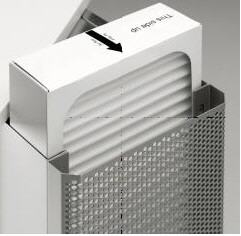 Der AL 310 von Wood wird mit dem patentierten Active ION HEPATM-Filter geliefert. Die hintere Abdeckung des Luftreinigers ermöglicht einen einfachen Zugang zum Filterwechsel. Wenn Sie einen Kohlefilter verwenden, wird dieser oben auf der Einheit unter der oberen Abdeckung angebracht.