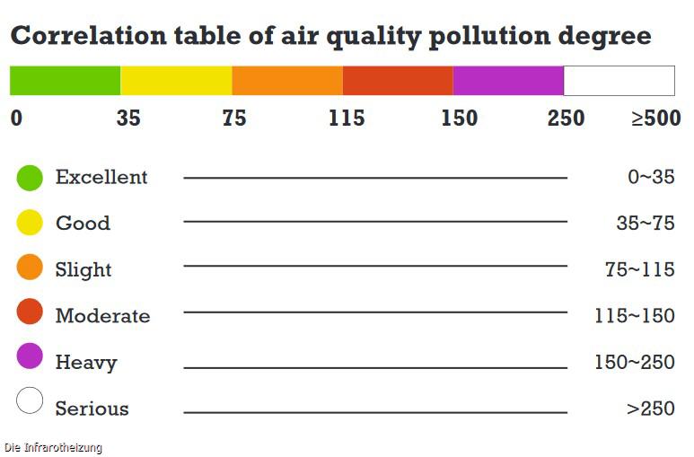 • Zeigt zusätzlich mit Farben die Luftqualität an