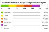 Violet: Sehr starke Luftverschmutzung zu Hause bleiben und Fenster geschlossen halten.
