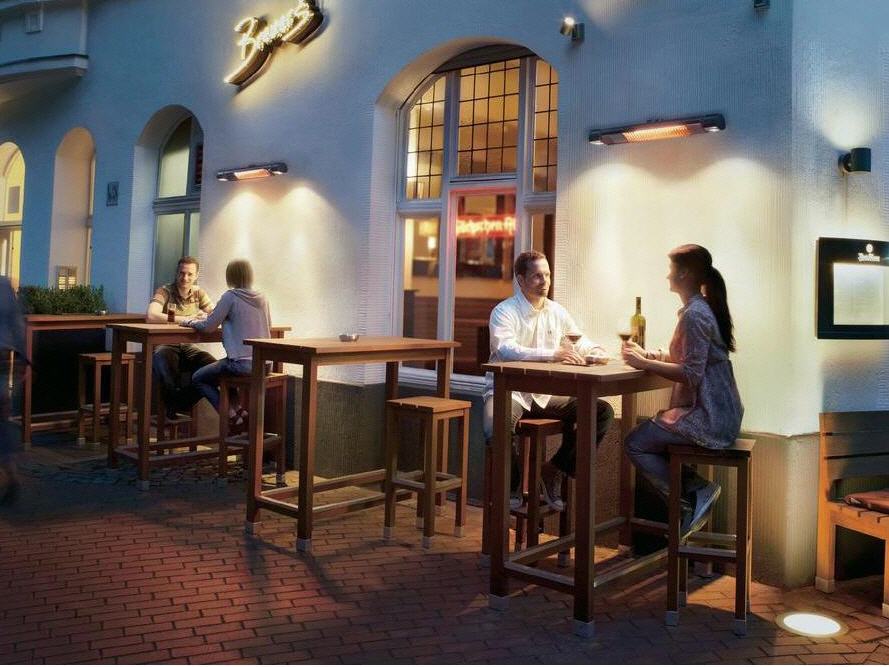 Das Gastro-Heizstrahler Komplettset. Schalten und Dimmen Sie Licht und Wärme mit Bluetooth-Dimmern per I-Phone oder Fernbedienung.