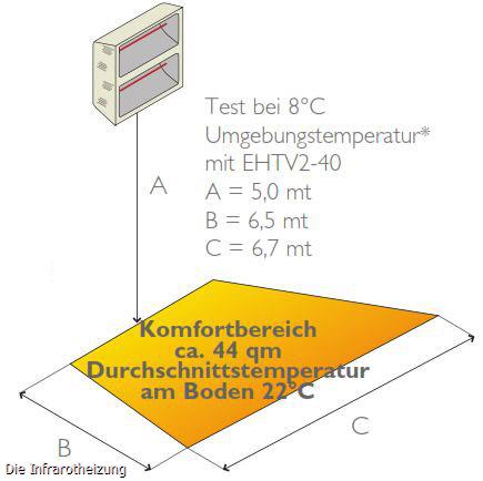 Der Helios Titan ist Testsieger mit Sofortwärme bis auf 5 Meter. Kein anderer Strahler projektiert 20°C auf 43m2 auf 5 m Entfernung. Großer Vorteil der Infrarotstrahler ist, dass einerseits nur beheizt wird wenn effektiv Wärme benötigt wird und andererseits 100% der Wärme sofort nach dem Einschalten des Gerätes spürbar ist.