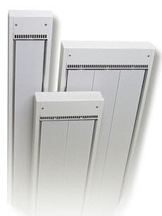 Heizelement aus pulverbeschichtetem Stahlblech, Grundfarbe: weiß (RAL 9010), für Räume mit normaler Belastung, wie u.a. Werkstätten, Sporthallen, Produktionsräume, Kirchen, etc.