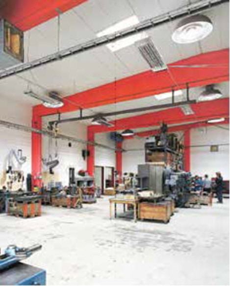 Punktgenaue Wärmeabgabe ermöglicht den Betrieb von einzelnen, beheizten Arbeitsplätzen in sonst unbeheizten Hallen.