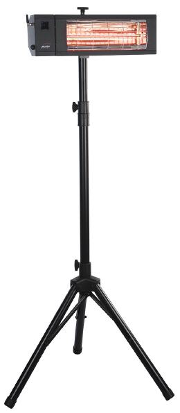 Burda Bluetooth-Heizstrahler Smart IP24 BTBHS2024 in den Farben Schwarz, Weiß oder Silber mit passendem Stativ für den mobilen Einsatz.