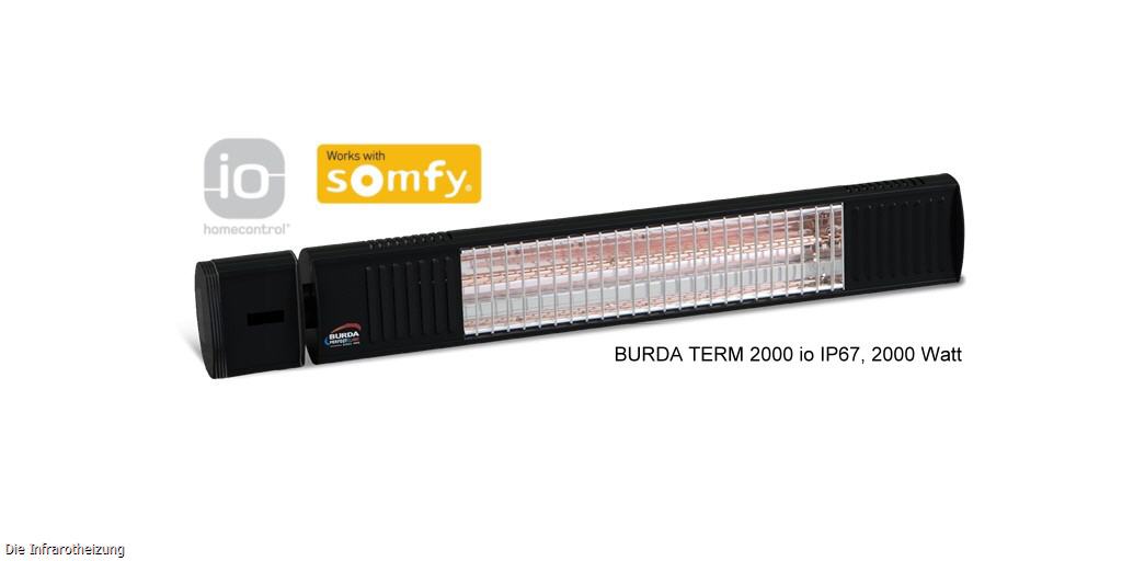 BURDA Heizstrahler TERM 2000 io IP67, 2000 Watt in Schwarz — kompatibel mit io-homecontrol®