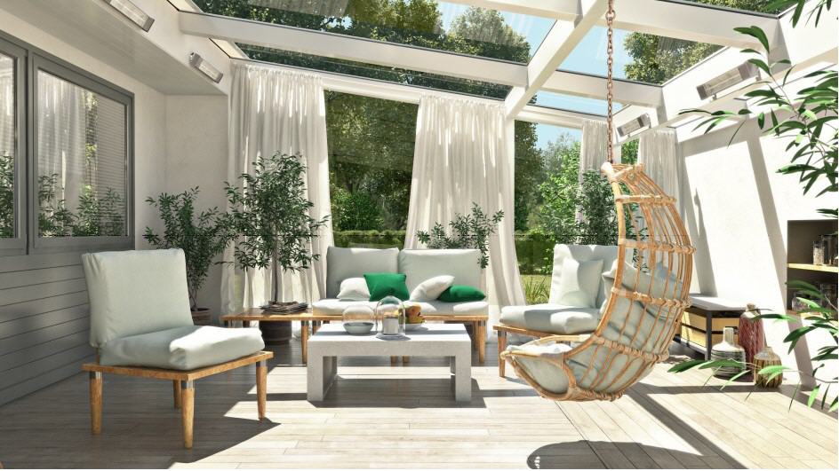 Mit seinem schlanken Design und dem leisen, unauffälligen Betrieb sowie seinem geringen Platzbedarf wirkt der InfraCalm-Strahler äußerst diskret.