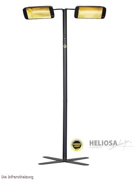Der Heliosa Indoor-Tower ist ausgestattet mit 2 Heliosa Hi Design 66 Amber Light Heizstrahlern und verfügt über einen mobilem Ständer.