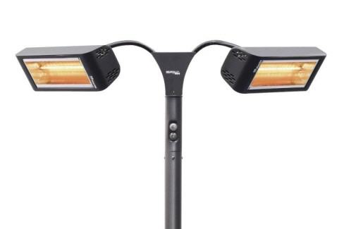 Infrarot Heizstrahler Heliosa Hi Design 993 mit "flexiblen" Armen. IPx5 - 2 x Heliosa 44 mit 1.500 Watt Amber Light Heizröhren für Kerzenscheinathmosphäre.