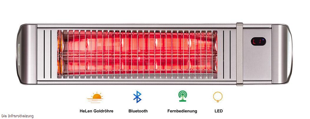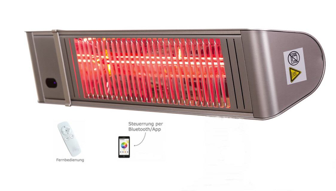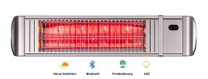 + In den Farben Silbergrau und Schwarz, 2 kW, IP65 für ca. 16m2 Erwärmungsfläche.