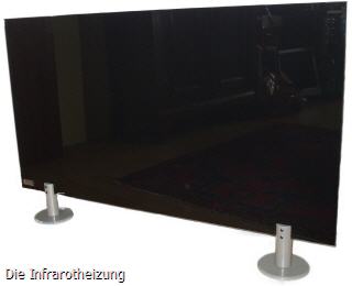 Die Infrarotheizungen können mit den Alu-Rundfüßen sowohl hochkant als auch quer aufgestellt werden