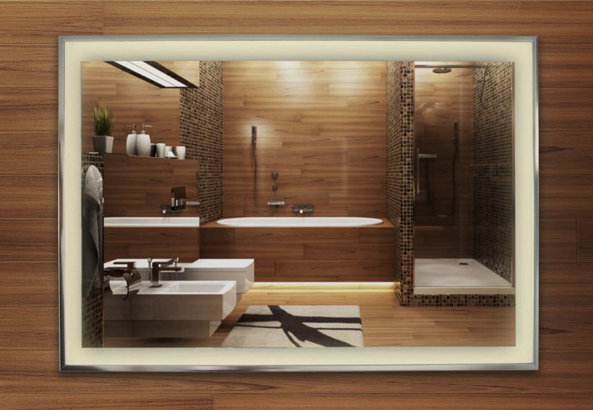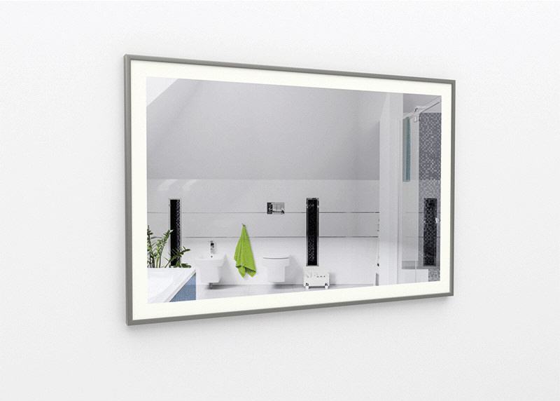 Infranomic Spiegelheizung 400 W mit LED Beleuchtung 4-seitig im Rahmen eingebaut