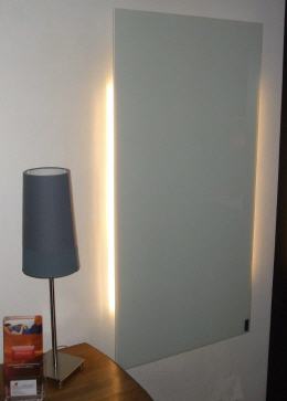 Die Infrarotheizung besteht aus einer weiß emaillierten Glasplatte aus 4 mm Sicherheitsglas mit Metall-Rückwand.