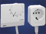 Steckerthermostat mit Drehregler, max. 3000 W, 5 - 30 °C, Schuko-Zwischenstecker, 1,5 m Kabel zum Bedienteil. Die Entfernung zur Wärmequelle ermöglicht genauere Temperaturermittlungen.