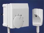 Steckerthermostat mit Drehregler, max. 3000 W, 5 - 30 °C, Bedienteil mit Schuko-Stecksockel, 1,5 m Kabel zur Schuko-Kupplung. Die Entfernung zur Wärmequelle ermöglicht genauere Temperaturermittlungen.